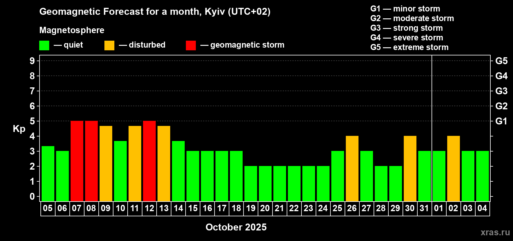Geomagnetic storm forecast in Kyiv for Oct 05, 2025