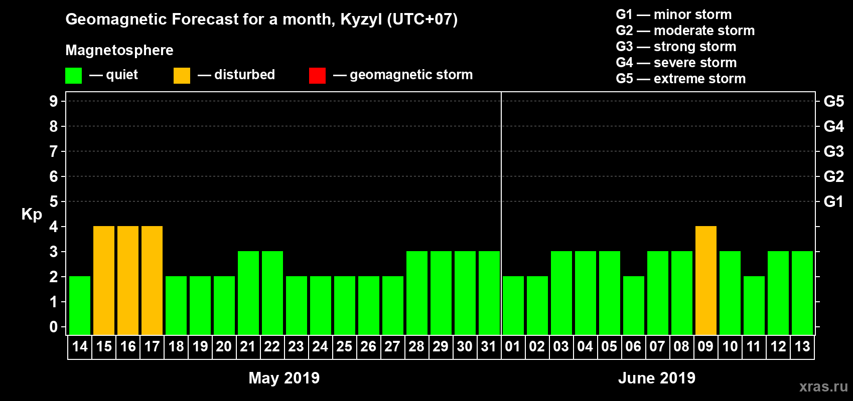 Geomagnetic activity forecast in Kyzyl — May 14, 2019