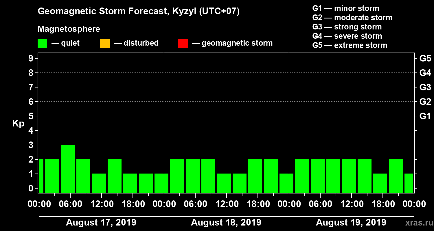 Geomagnetic storm forecast in Kyzyl for Aug 17, 2019