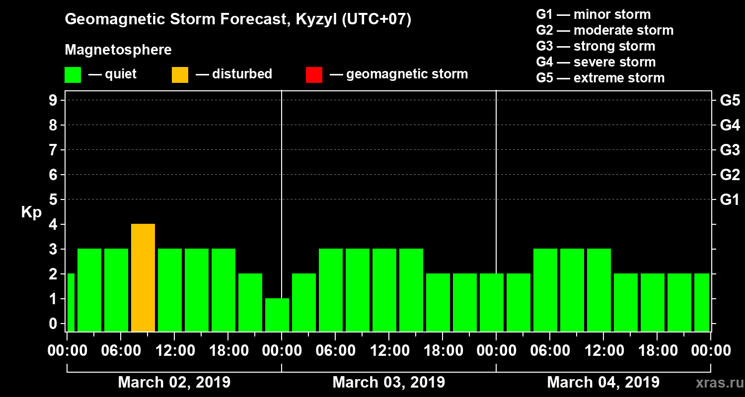 Geomagnetic storm forecast in Kyzyl for Mar 02, 2019