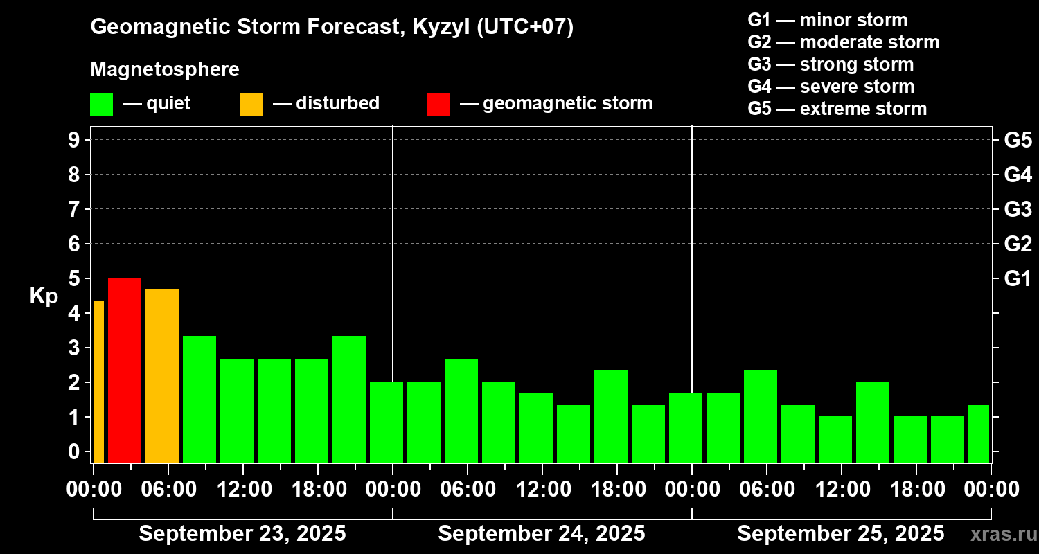 Geomagnetic storm forecast in Kyzyl for Sep 23, 2025