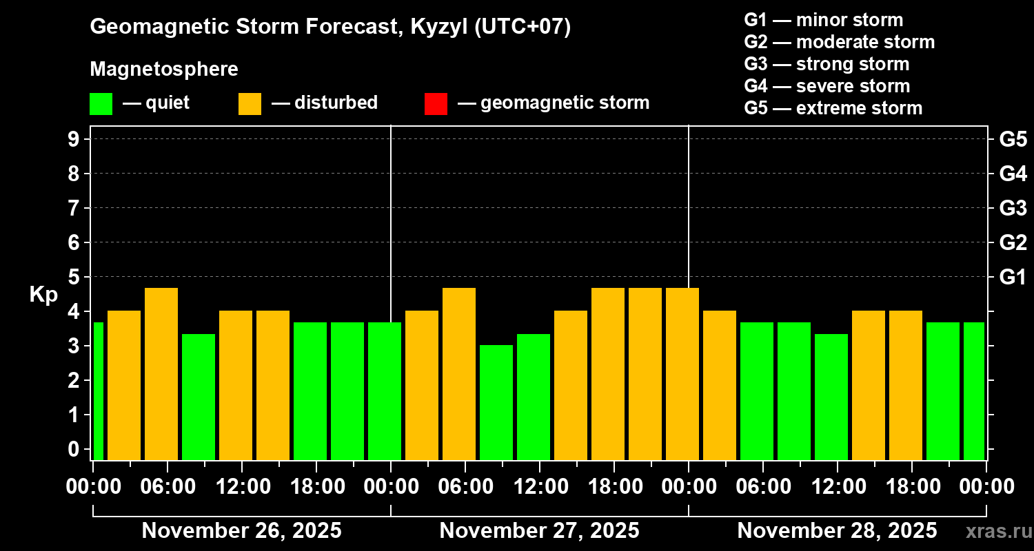 Geomagnetic activity forecast in Kyzyl — Nov 26, 2025