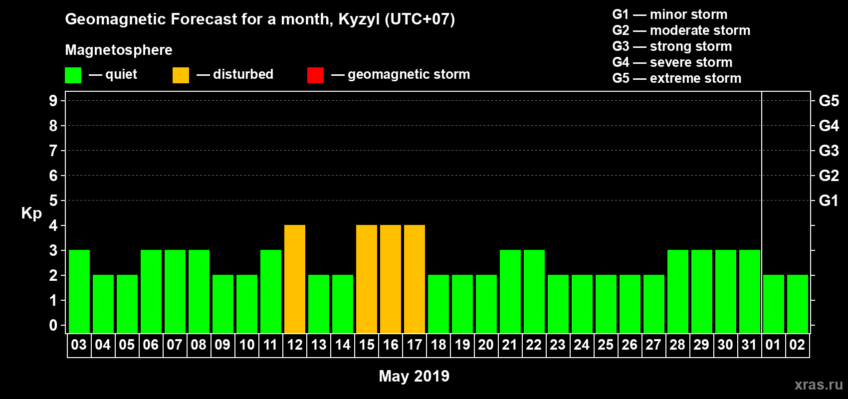 Geomagnetic activity forecast in Kyzyl — May 03, 2019