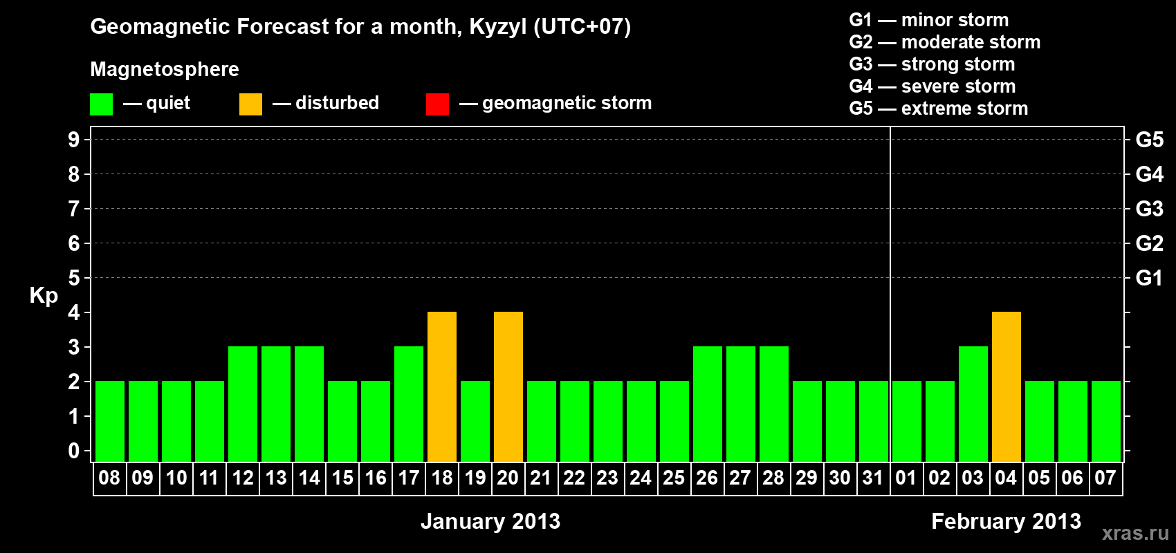 Geomagnetic storm forecast in Kyzyl for Jan 08, 2013