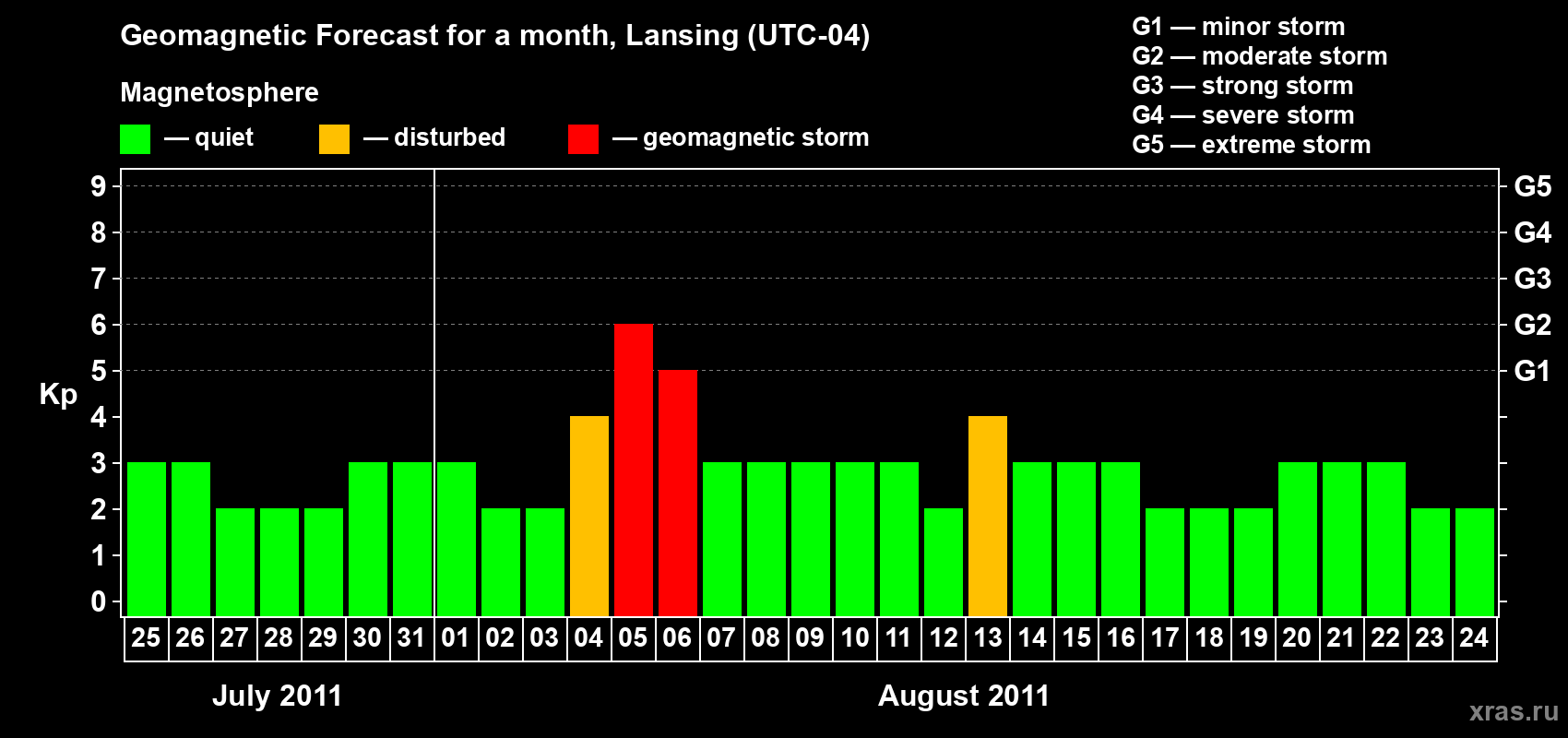 Geomagnetic storm forecast in Lansing for Jul 25, 2011