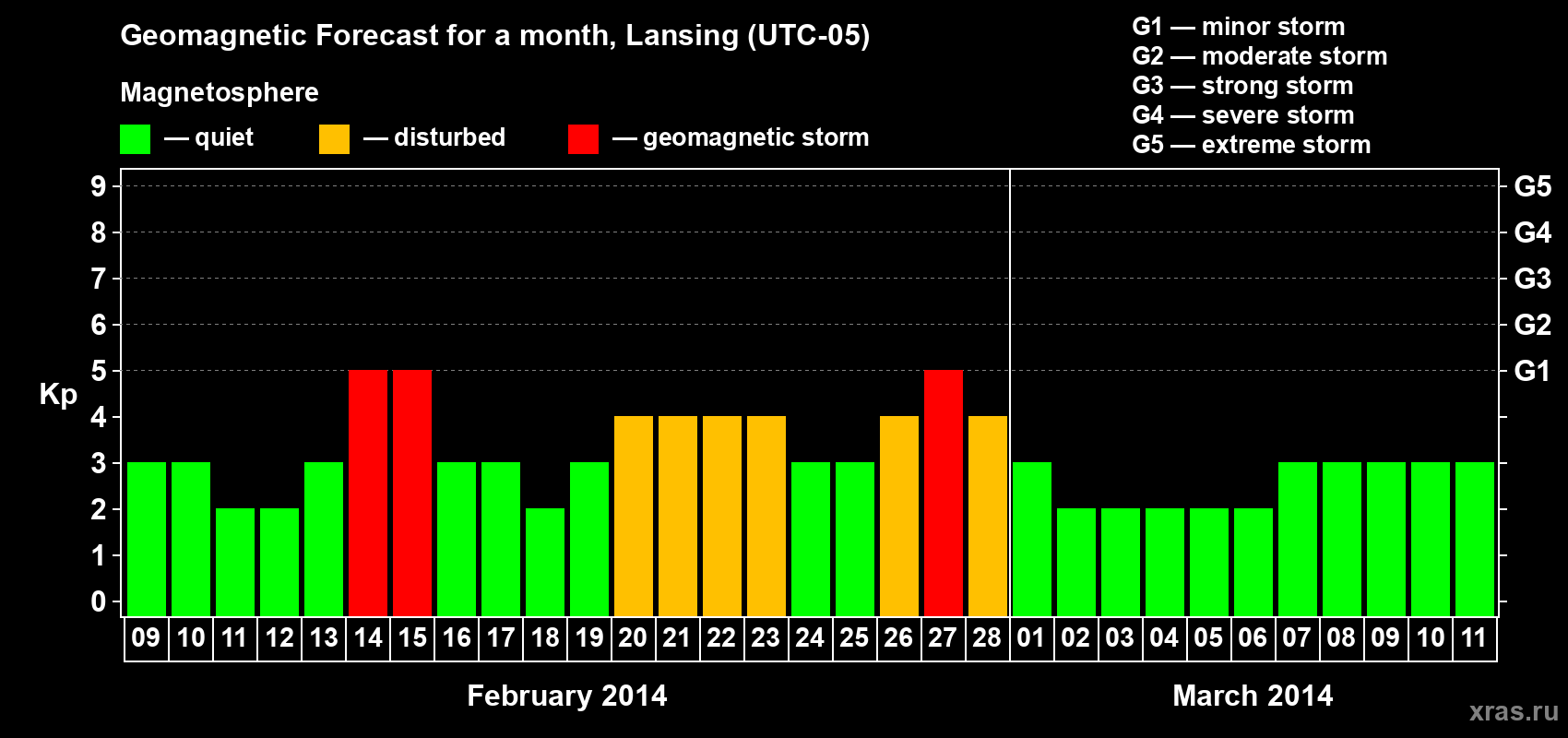 Geomagnetic storm forecast in Lansing for Feb 09, 2014