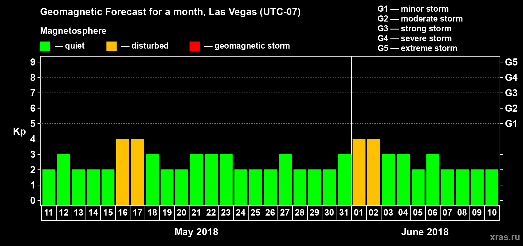 Geomagnetic storm forecast in Las Vegas for May 11, 2018