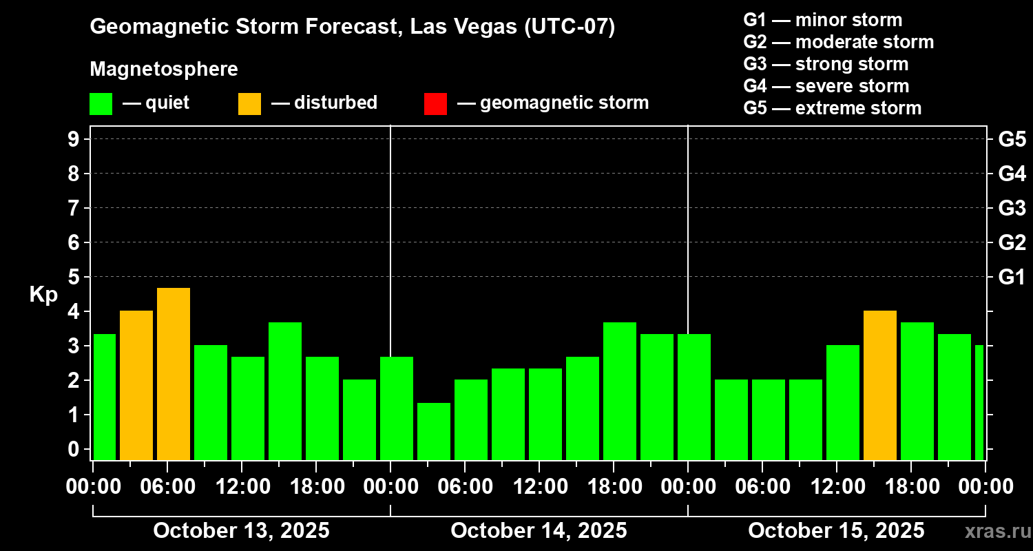 Geomagnetic storm forecast in Las Vegas for Oct 13, 2025