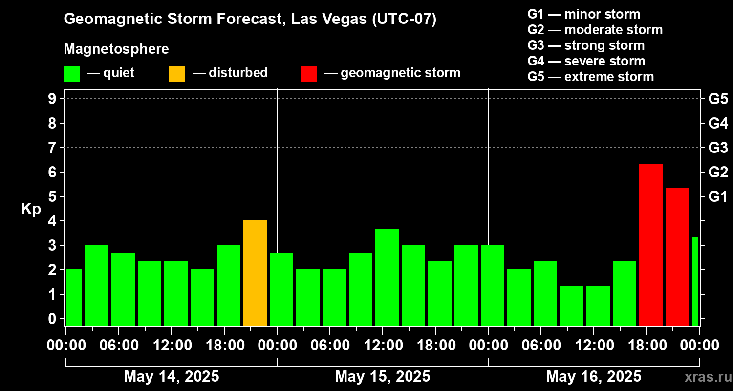 Geomagnetic storm forecast in Las Vegas for May 14, 2025