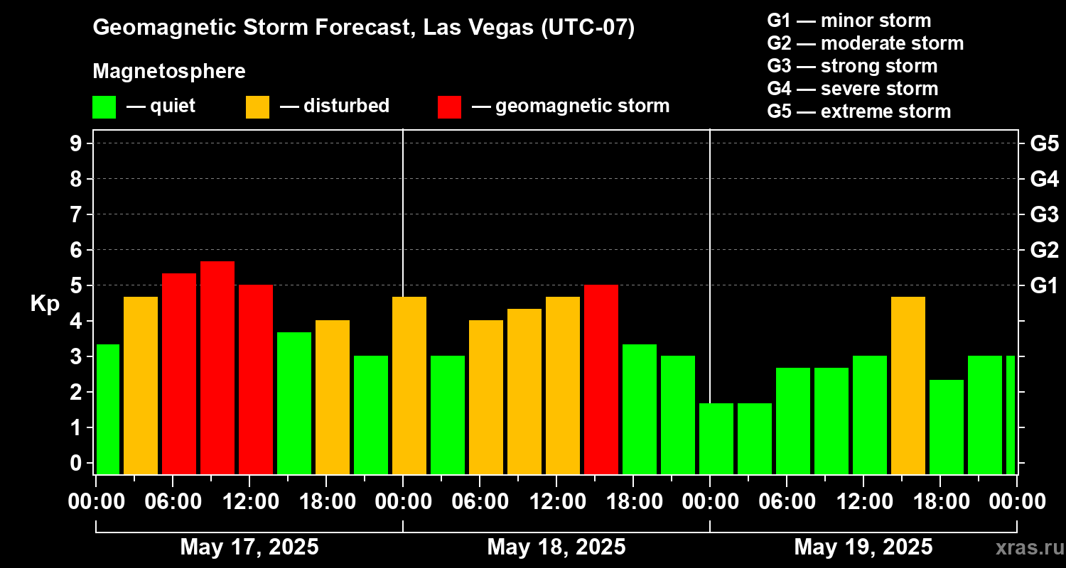 Geomagnetic storm forecast in Las Vegas for May 17, 2025