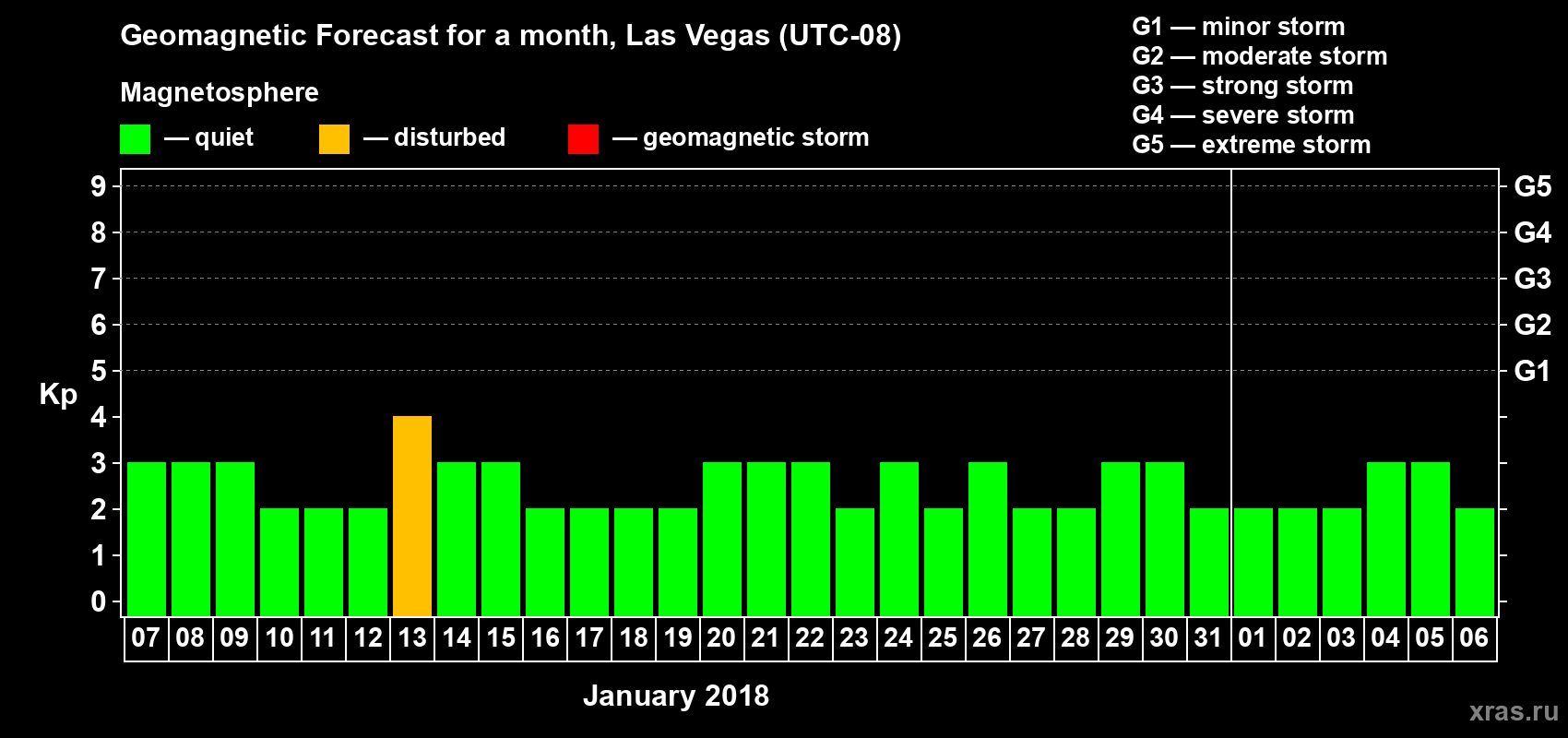 Geomagnetic storm forecast in Las Vegas for Jan 07, 2018