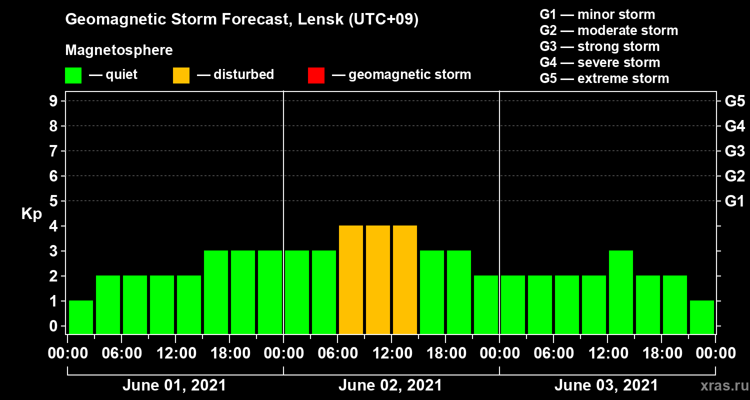 Geomagnetic storm forecast in Lensk for Jun 01, 2021