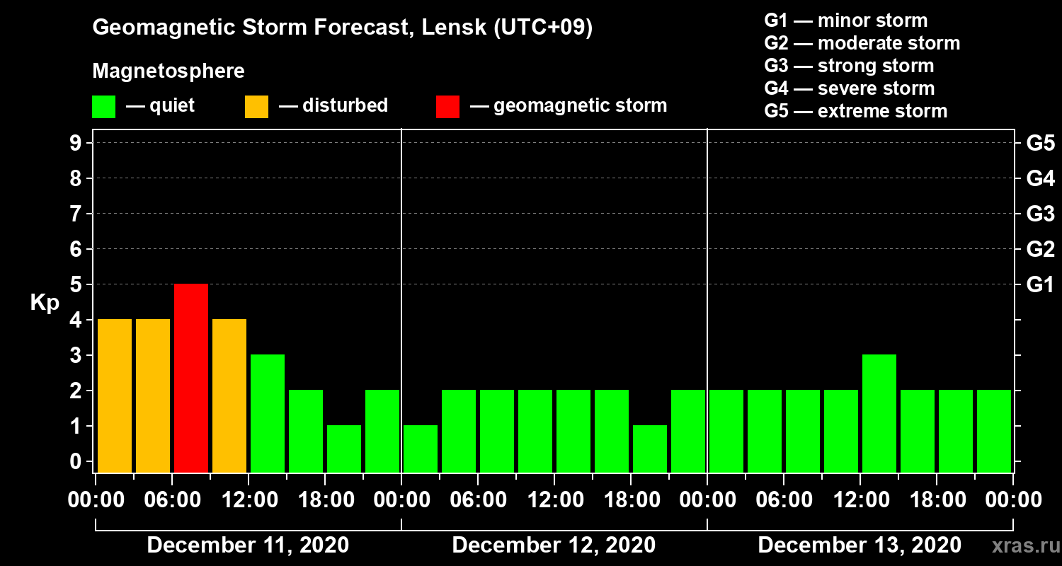 Geomagnetic activity forecast in Lensk — Dec 11, 2020