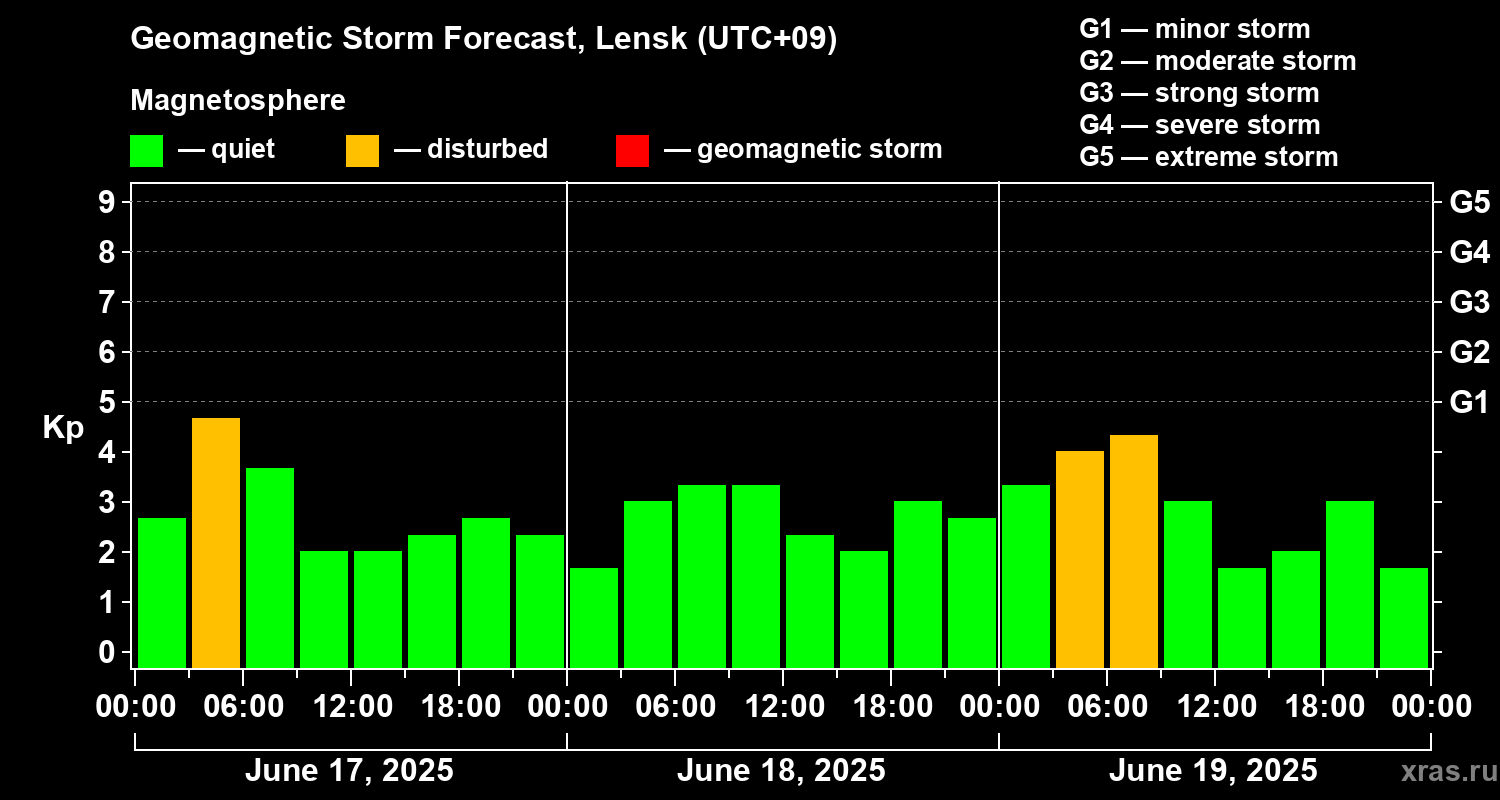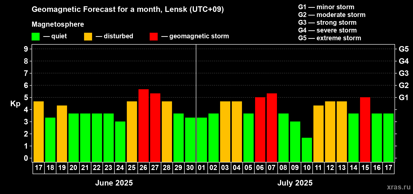 Geomagnetic storm forecast in Lensk for Jun 17, 2025