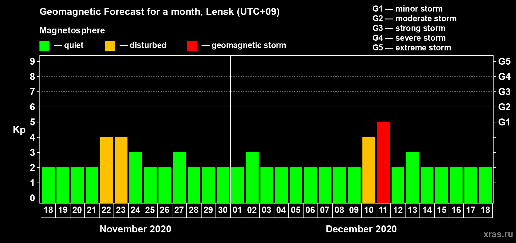 Geomagnetic activity forecast in Lensk — Nov 18, 2020