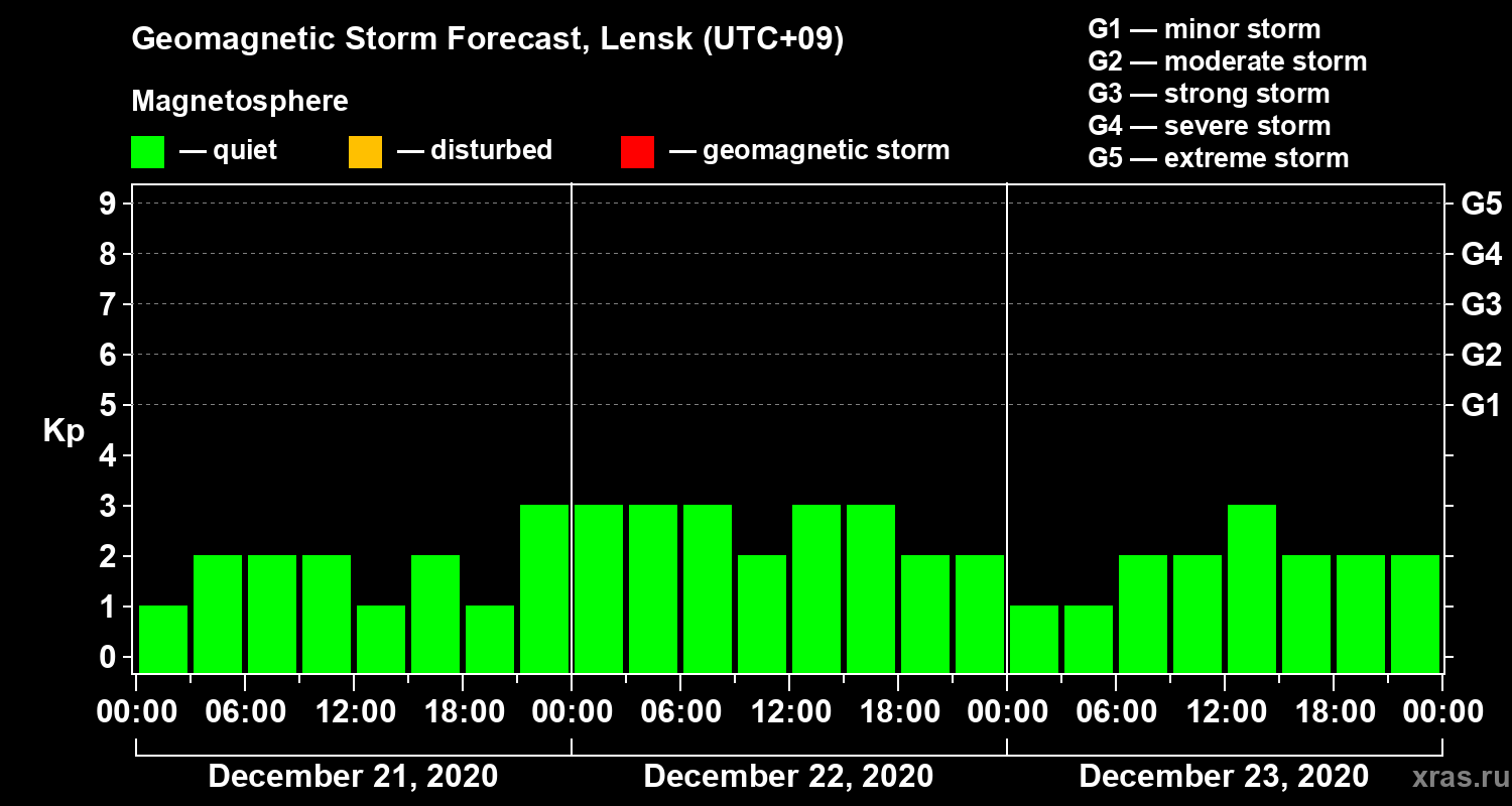 Geomagnetic activity forecast in Lensk — Dec 21, 2020