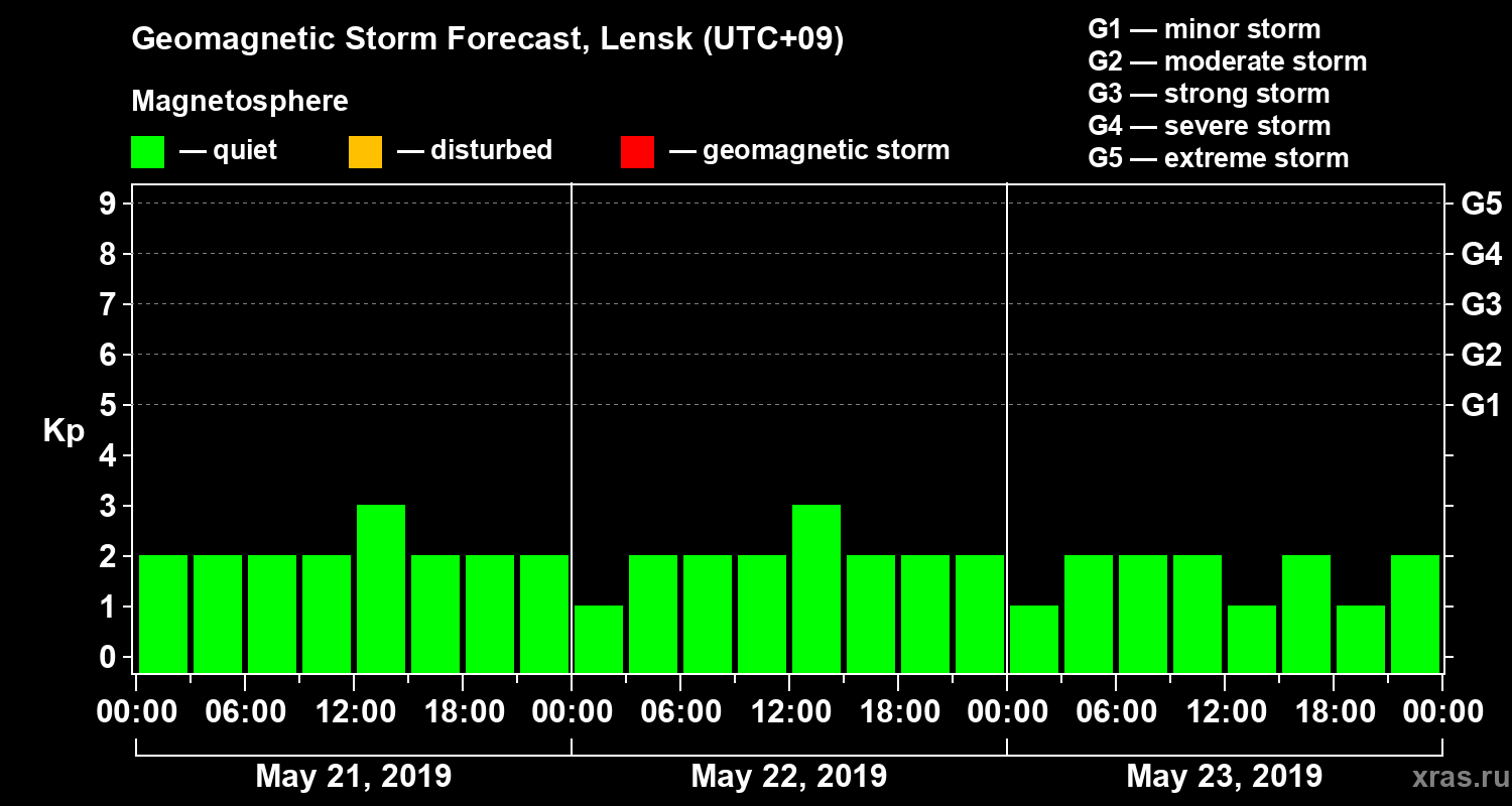 Geomagnetic activity forecast in Lensk — May 21, 2019
