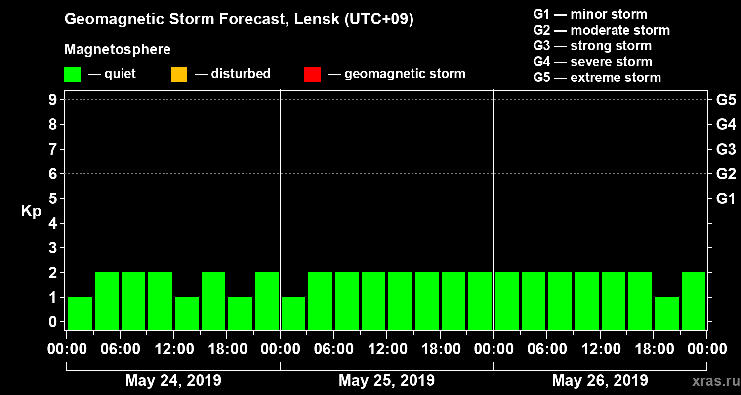 Geomagnetic activity forecast in Lensk — May 24, 2019