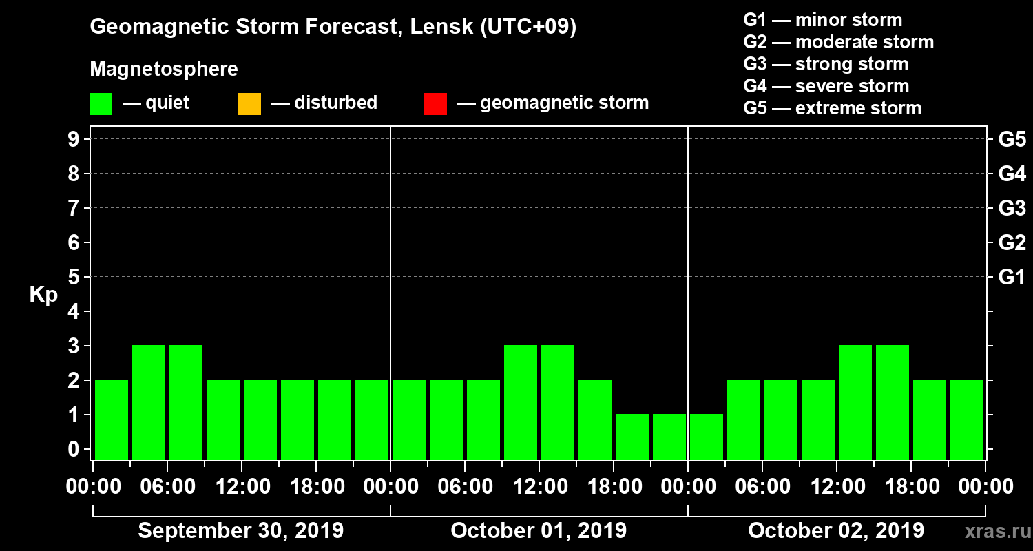 Geomagnetic activity forecast in Lensk — Sep 30, 2019