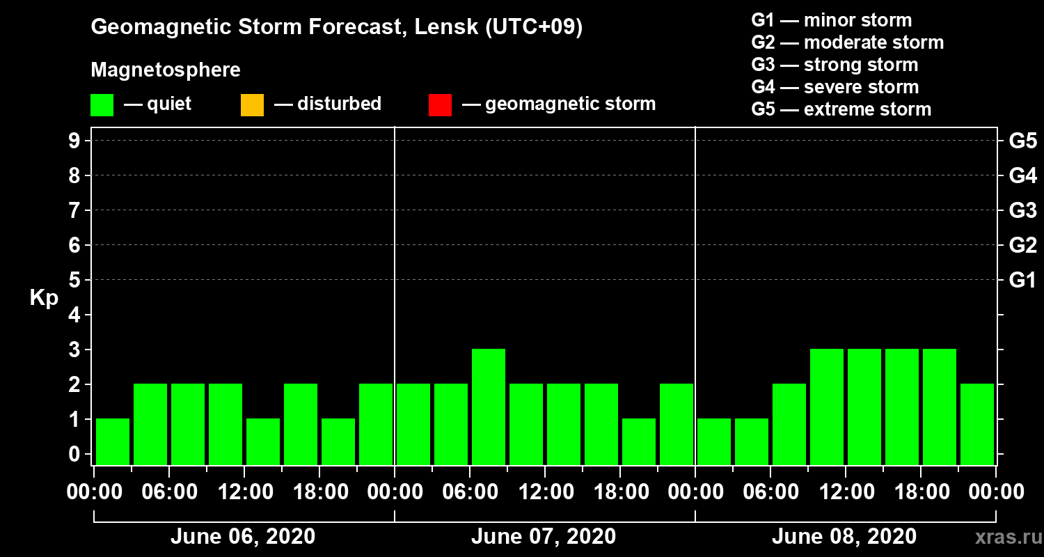 Geomagnetic activity forecast in Lensk — Jun 06, 2020