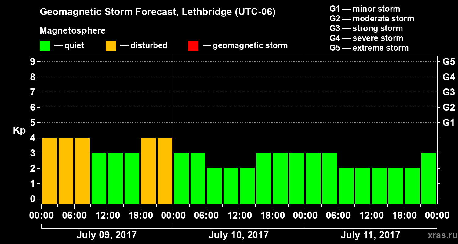 Geomagnetic storm forecast in Lethbridge for Jul 09, 2017