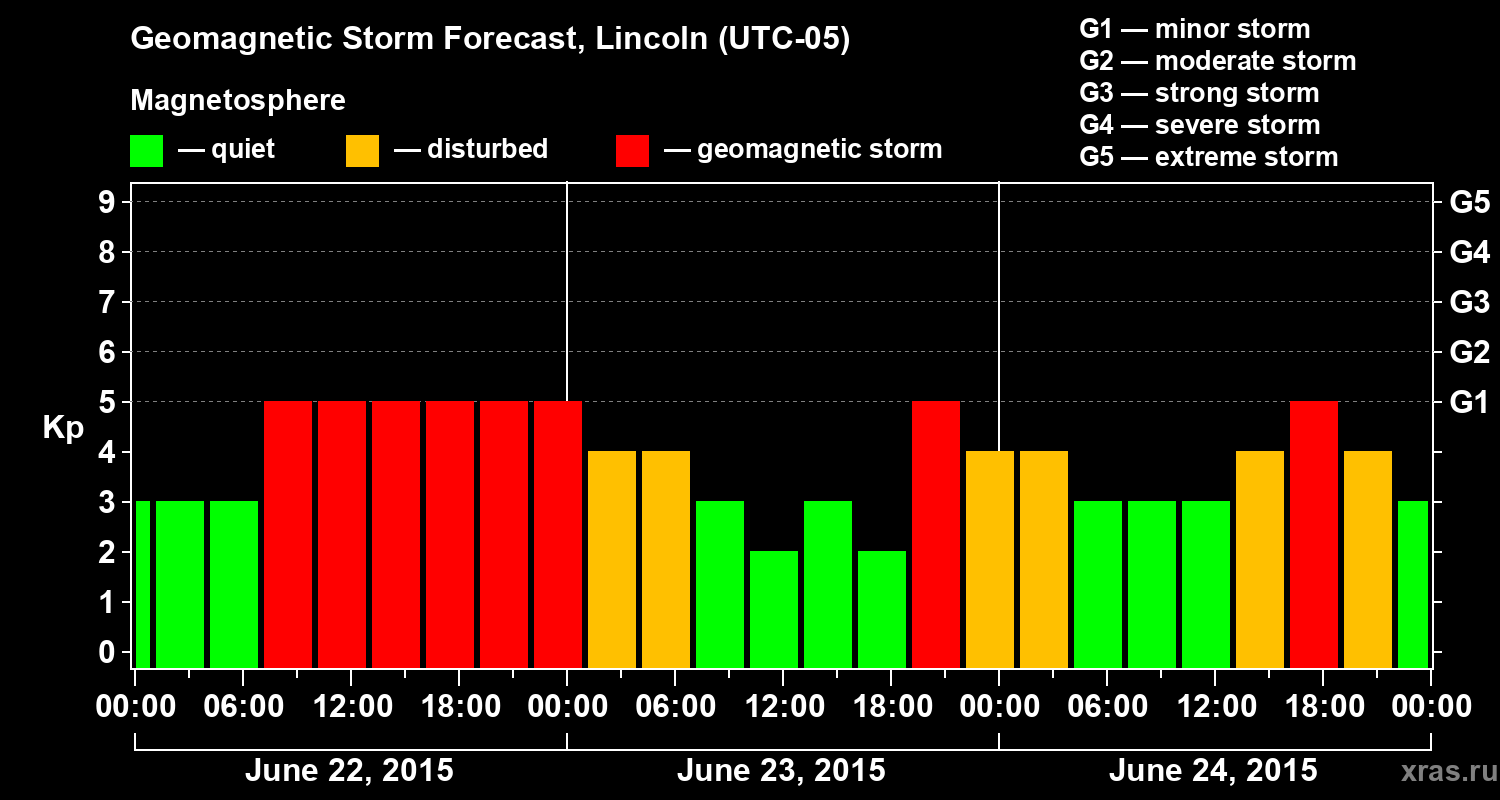 Geomagnetic storm forecast in Lincoln for Jun 22, 2015