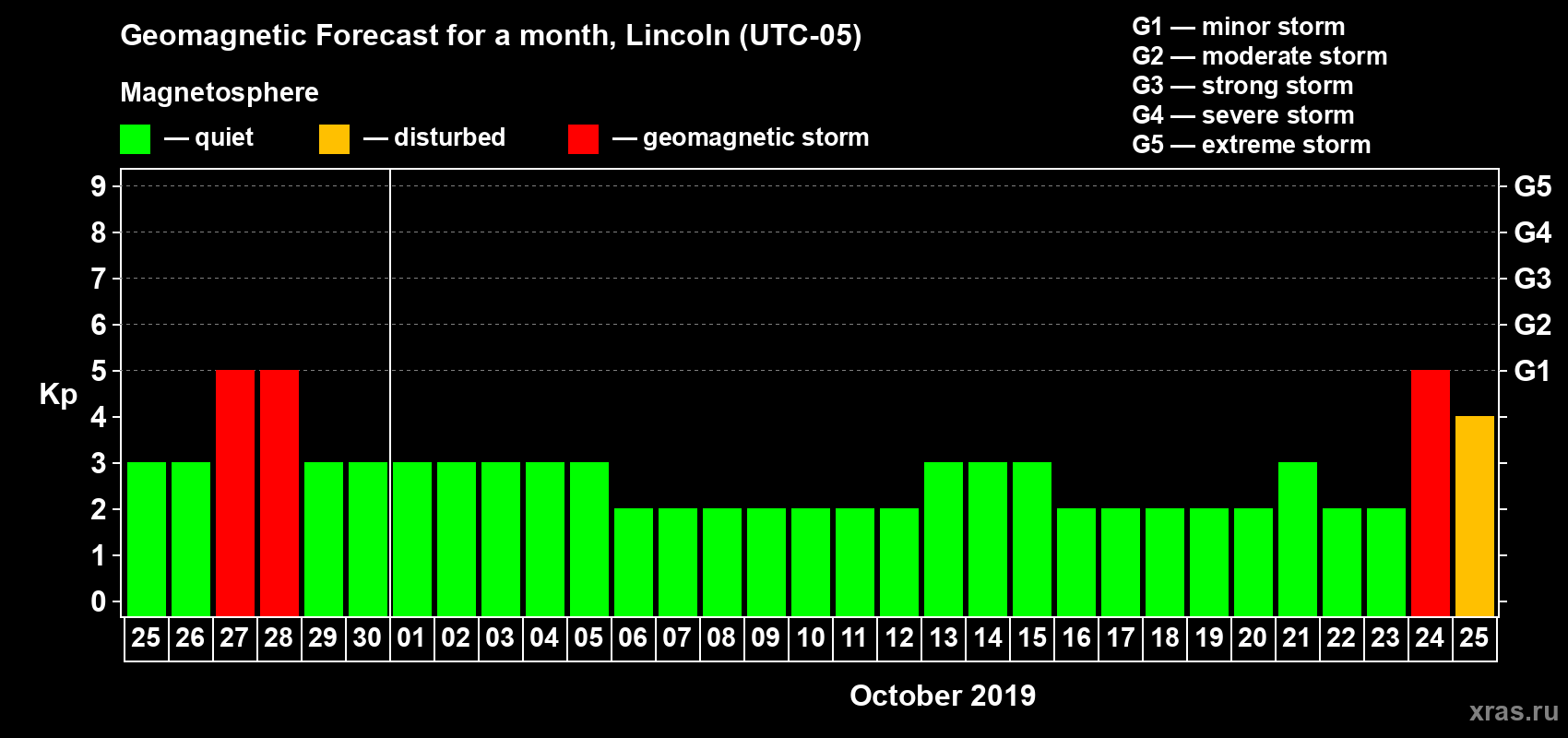 Geomagnetic storm forecast in Lincoln for Sep 25, 2019