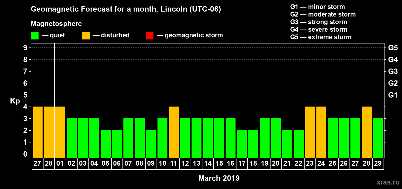 Geomagnetic storm forecast in Lincoln for Feb 27, 2019