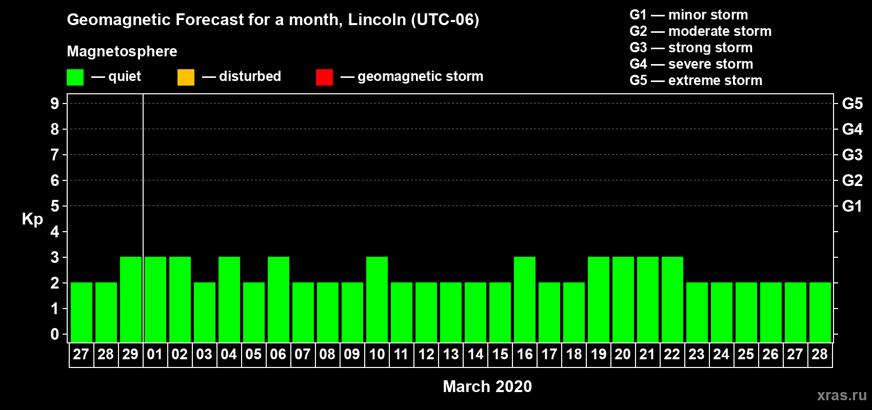 Geomagnetic storm forecast in Lincoln for Feb 27, 2020