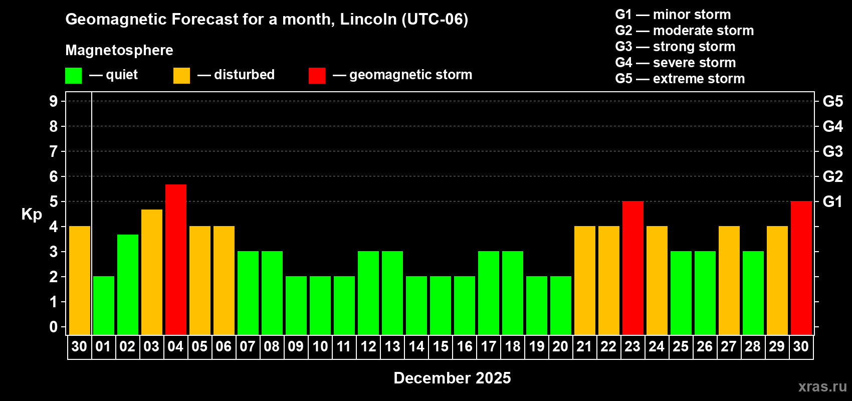 Geomagnetic storm forecast in Lincoln for Nov 30, 2025