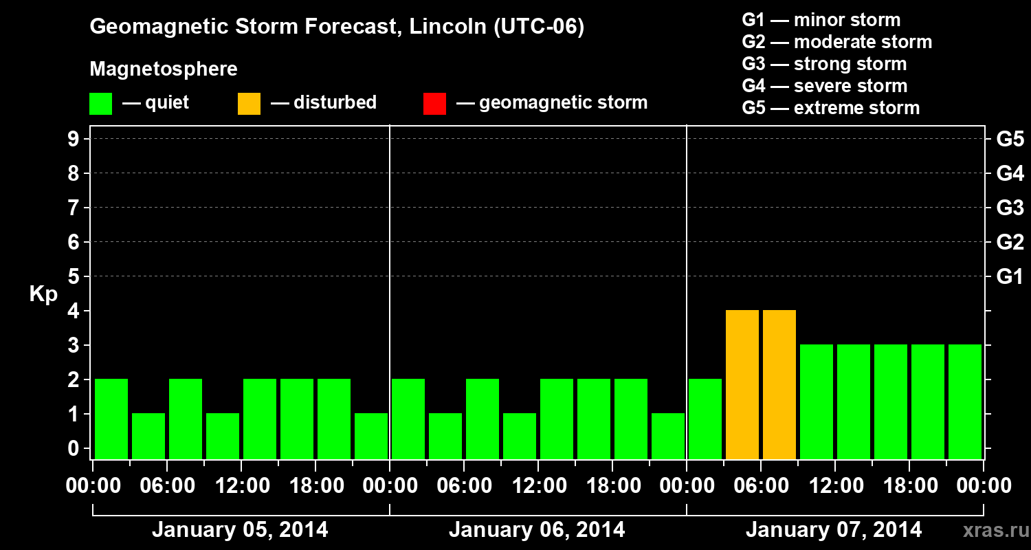 Geomagnetic storm forecast in Lincoln for Jan 05, 2014