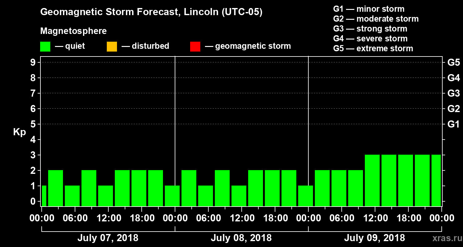 Geomagnetic storm forecast in Lincoln for Jul 07, 2018