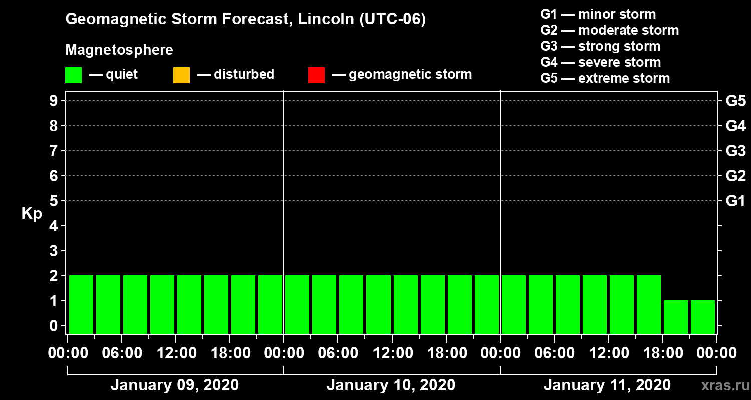 Geomagnetic storm forecast in Lincoln for Jan 09, 2020