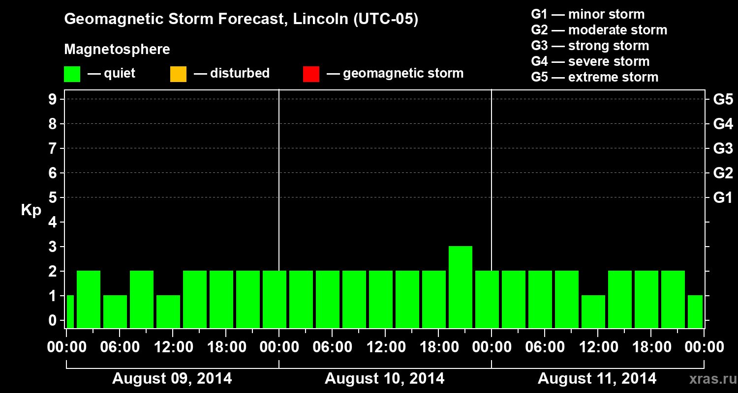 Geomagnetic storm forecast in Lincoln for Aug 09, 2014
