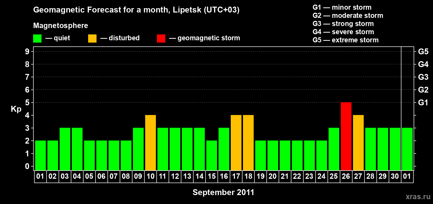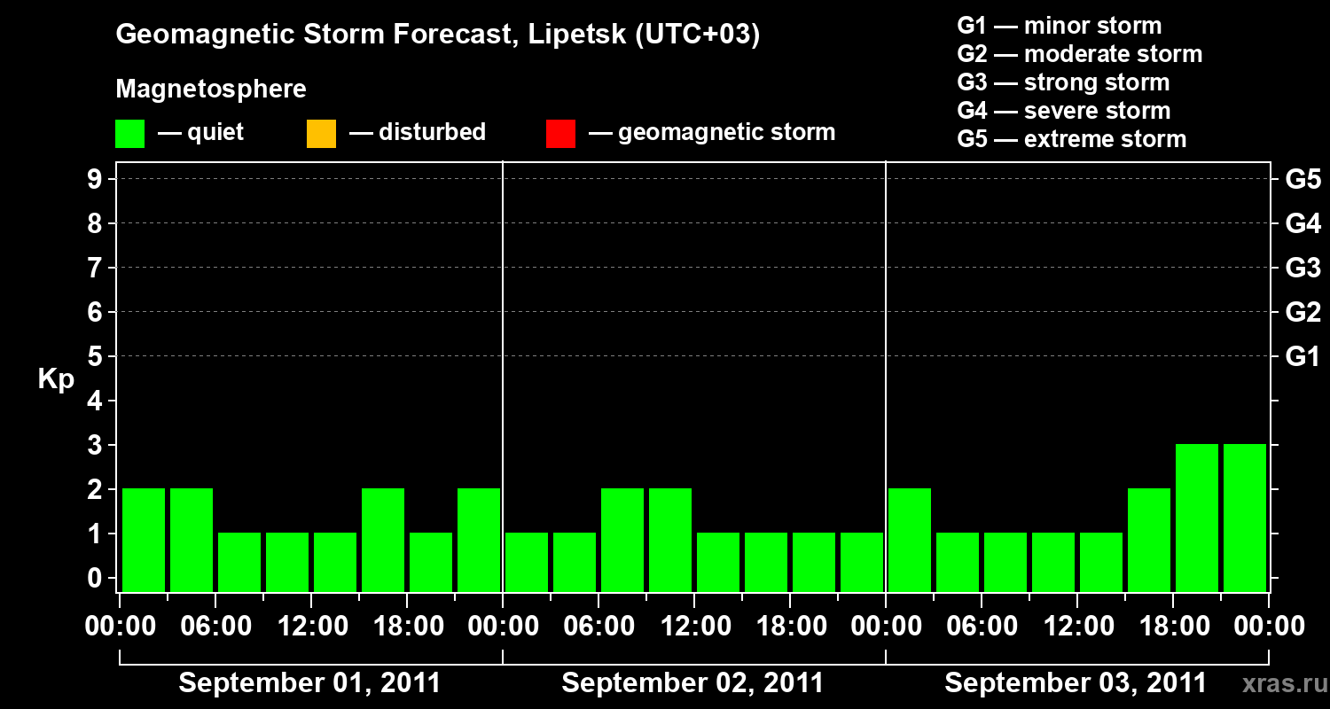 Geomagnetic storm forecast in Lipetsk for Sep 01, 2011