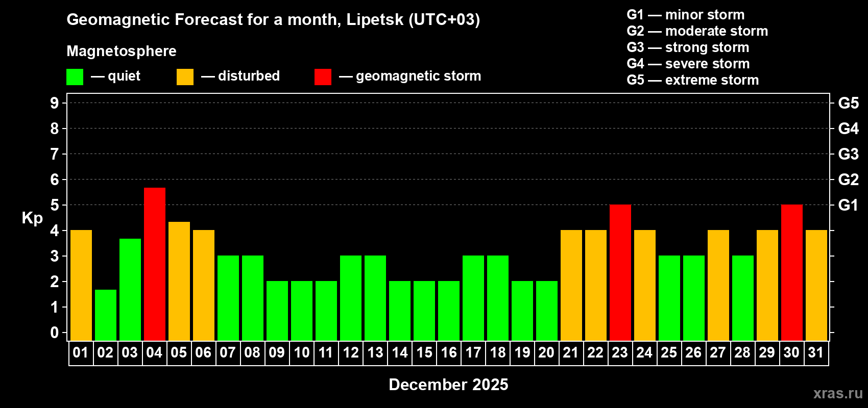 Geomagnetic storm forecast in Lipetsk for Dec 01, 2025