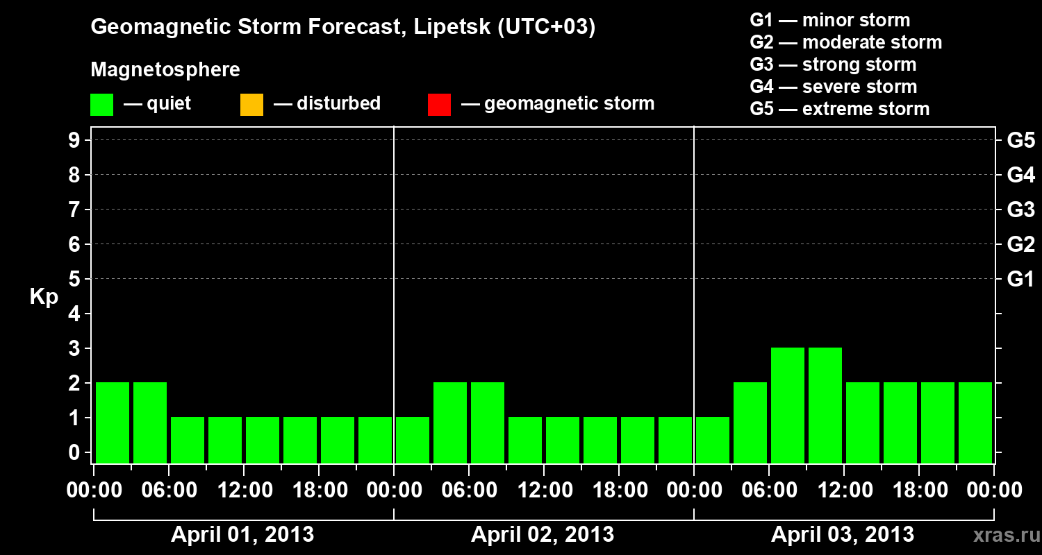 Geomagnetic storm forecast in Lipetsk for Apr 01, 2013