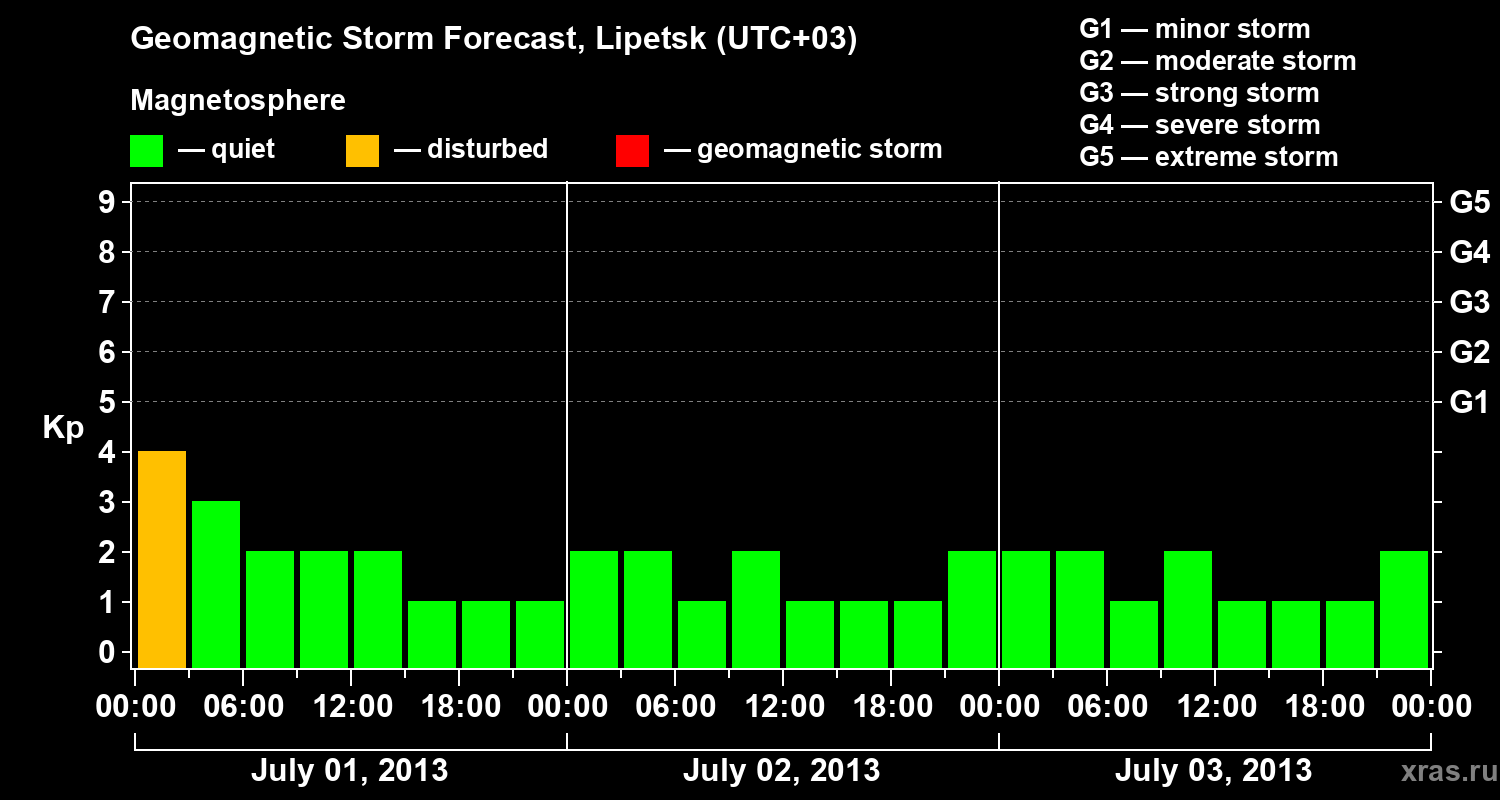 Geomagnetic storm forecast in Lipetsk for Jul 01, 2013