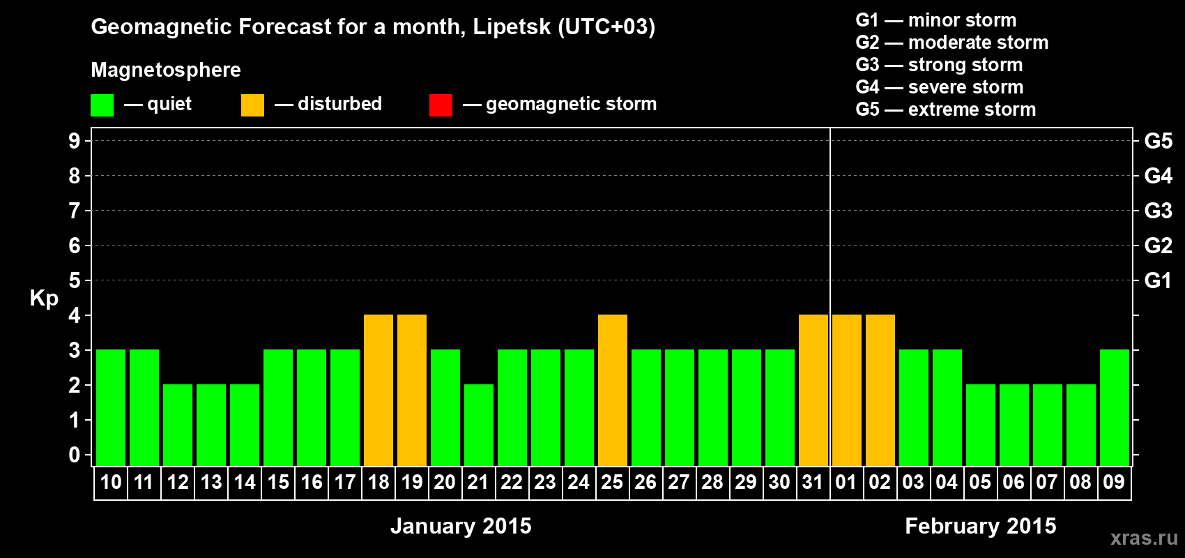Geomagnetic activity forecast in Lipetsk — Jan 10, 2015