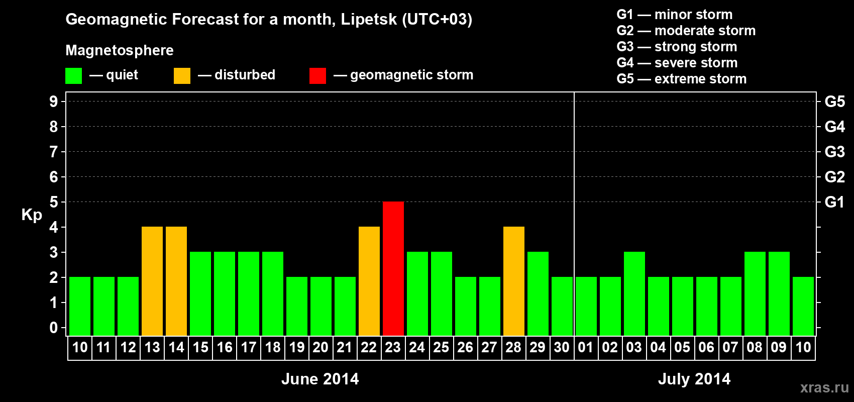 Geomagnetic storm forecast in Lipetsk for Jun 10, 2014