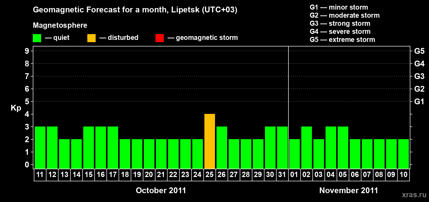 Geomagnetic storm forecast in Lipetsk for Oct 11, 2011