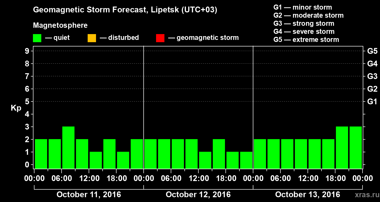 Geomagnetic storm forecast in Lipetsk for Oct 11, 2016
