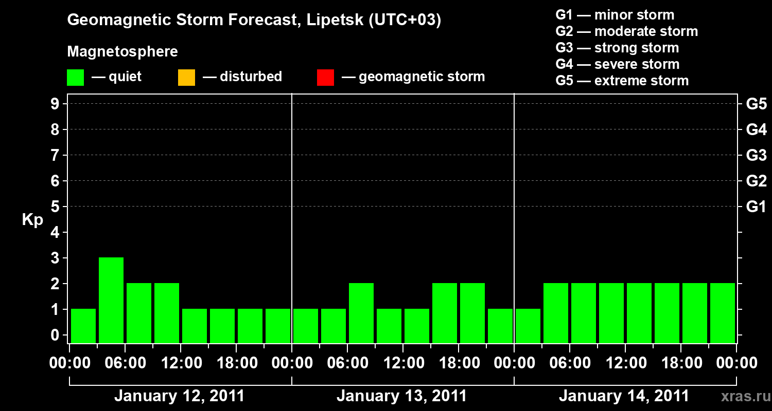 Geomagnetic storm forecast in Lipetsk for Jan 12, 2011