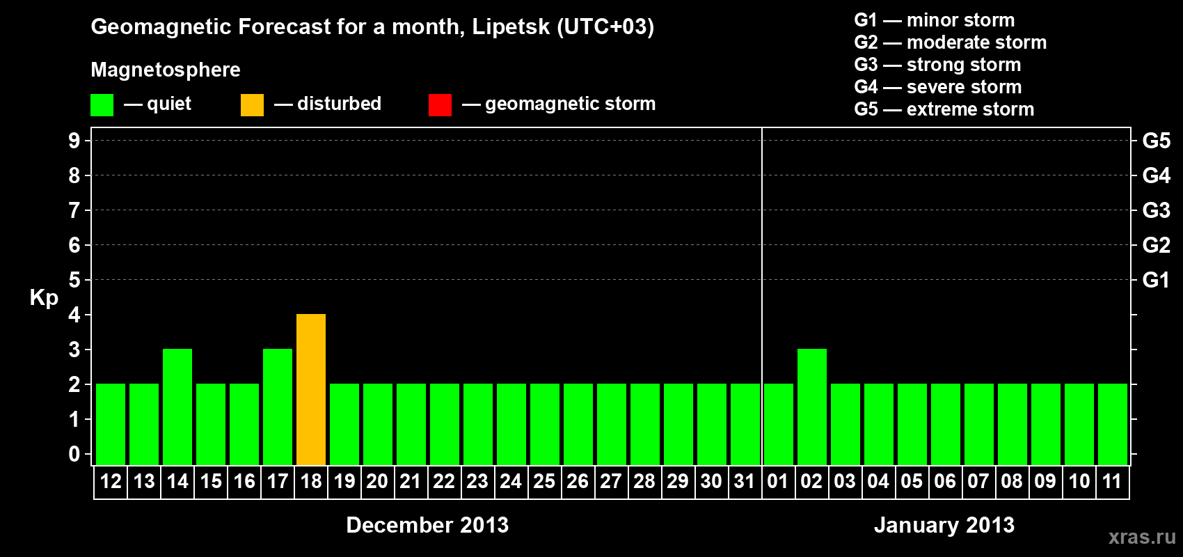 Geomagnetic storm forecast in Lipetsk for Dec 12, 2012