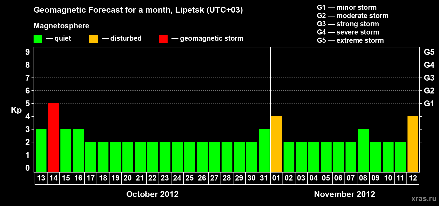 Geomagnetic storm forecast in Lipetsk for Oct 13, 2012