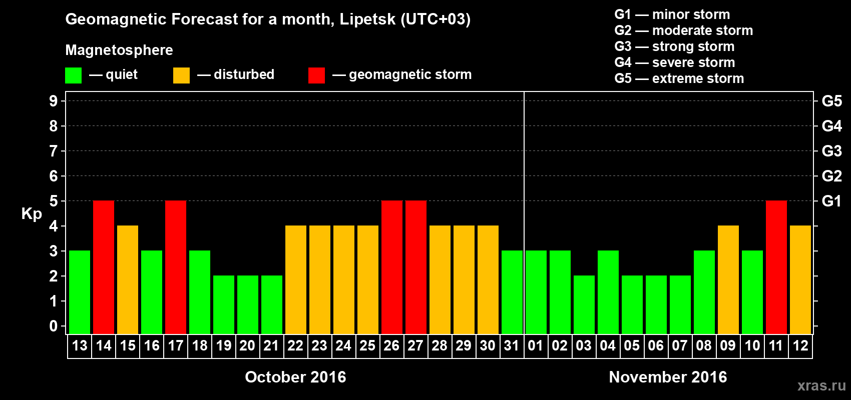 Geomagnetic storm forecast in Lipetsk for Oct 13, 2016