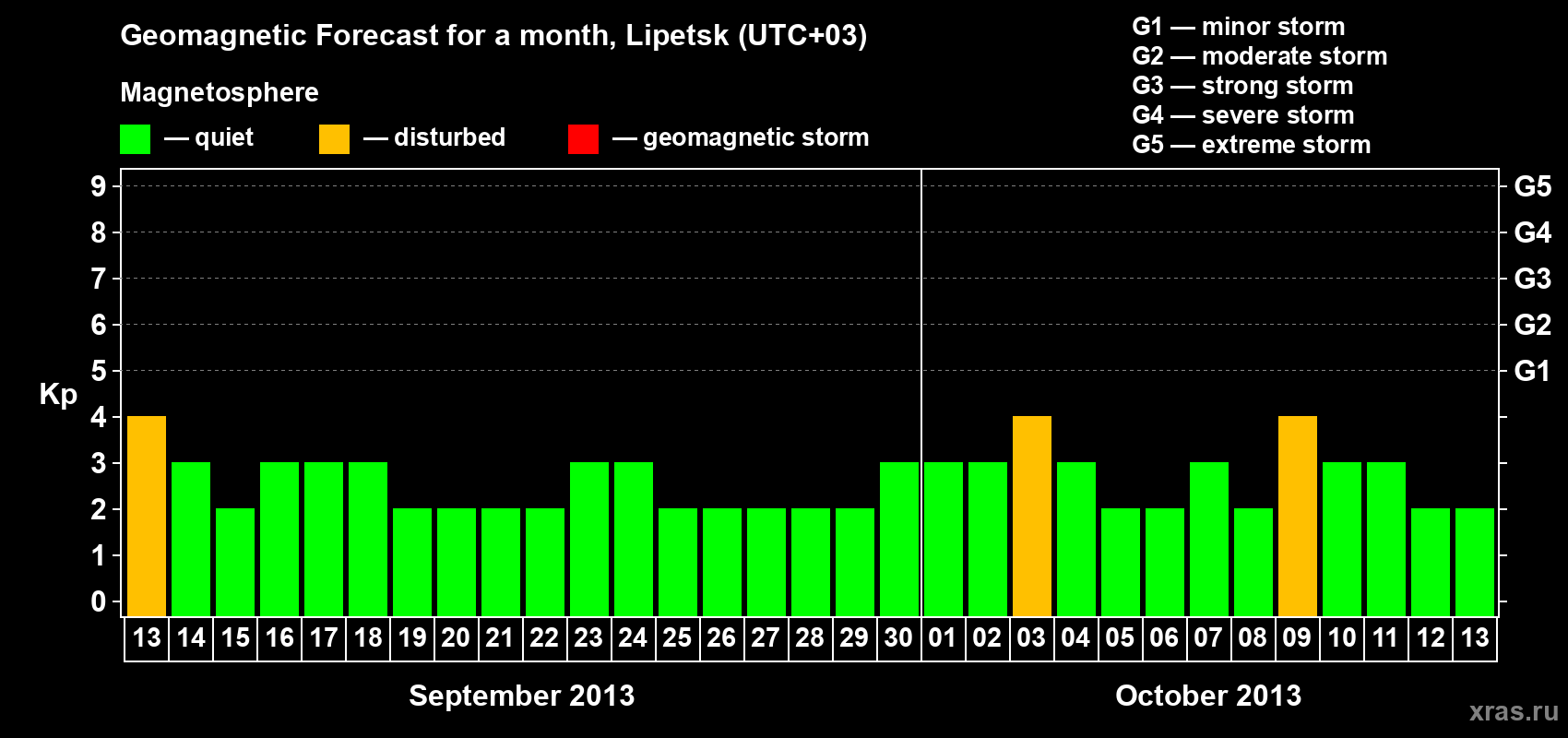 Geomagnetic storm forecast in Lipetsk for Sep 13, 2013