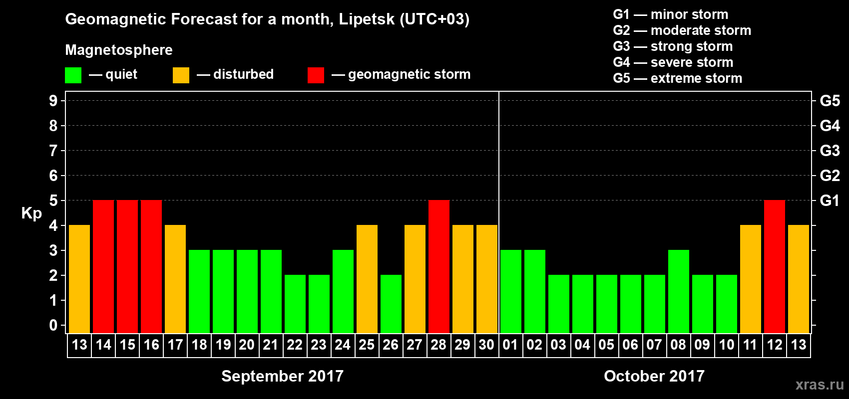 Geomagnetic storm forecast in Lipetsk for Sep 13, 2017