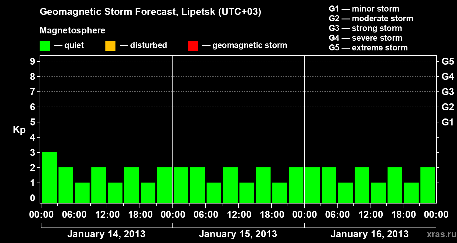 Geomagnetic storm forecast in Lipetsk for Jan 14, 2013