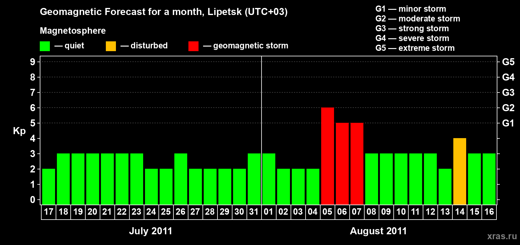 Geomagnetic storm forecast in Lipetsk for Jul 17, 2011